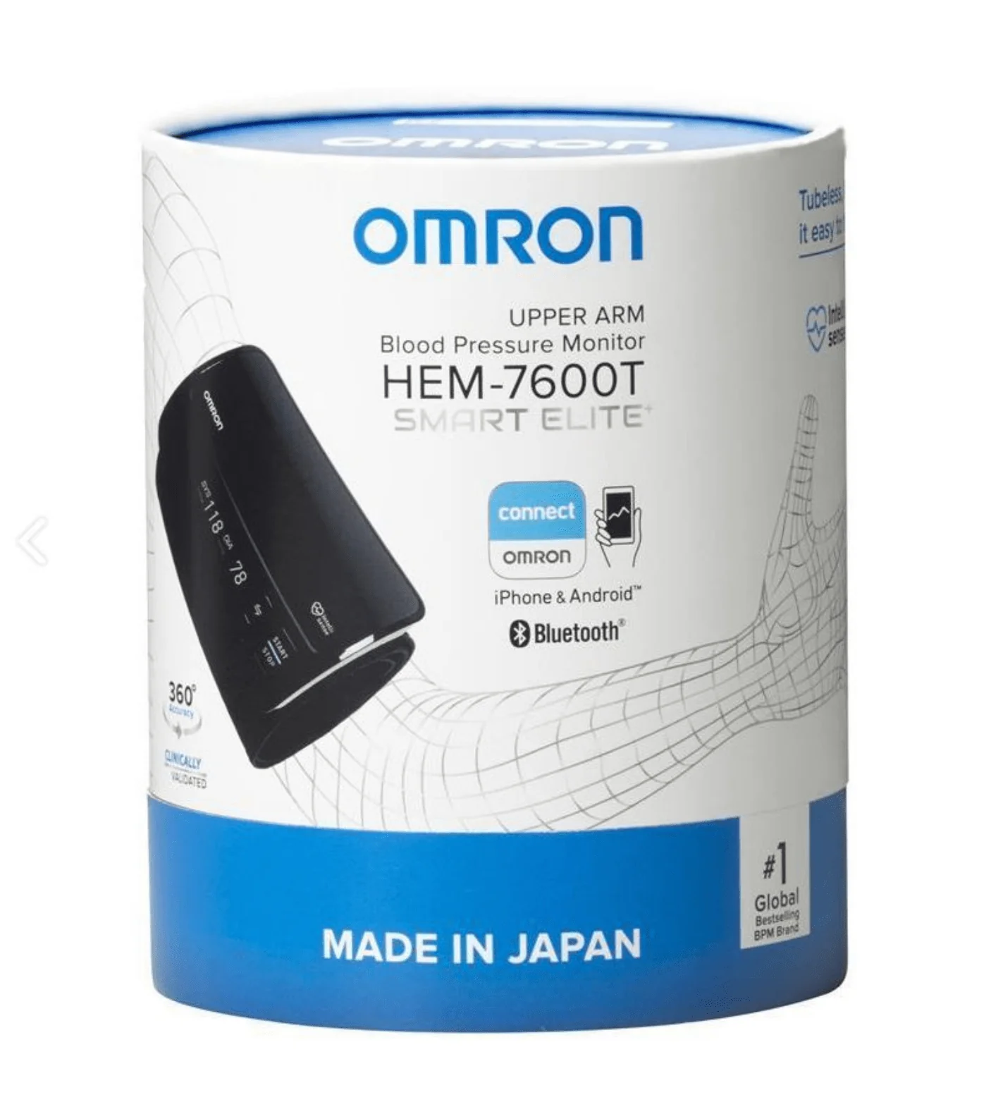Introducing the new Omron Smart Elite Plus Upper Arm Blood Pressure Monitor, that provides accurate readings from the tubeless cuff without the hassle of wires. The Bluetooth feature allows you to easily save and track your readings via the OMRON connect App by wirelessly syncing to your smartphone or tablet.