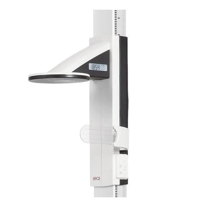 If you are looking for a wireless solution for taking height measurements, you cannot go wrong with the free-standing digital stadiometer seca 274. Its individual parts of high-quality aluminium can be easily assembled and tightly screwed together and its measurement range from 30 cm to 220 cm can be used for small children to adults. Additional benefits include the stable glass platform, the white backlit display on the headpiece and wireless data transmission. Data can be sent to an optionalseca 360° wireless printer, a PC or a wireless scale that can calculate the BMI from height and weight measurements.